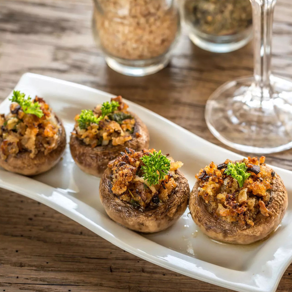 Cogumelo Portobello recheado de carne picada e ovo c/ arroz basmati